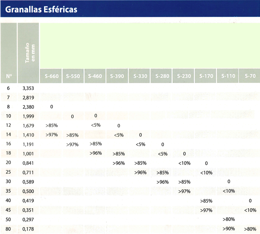 | Granulometrías | Desde S-70 hasta S-780 |